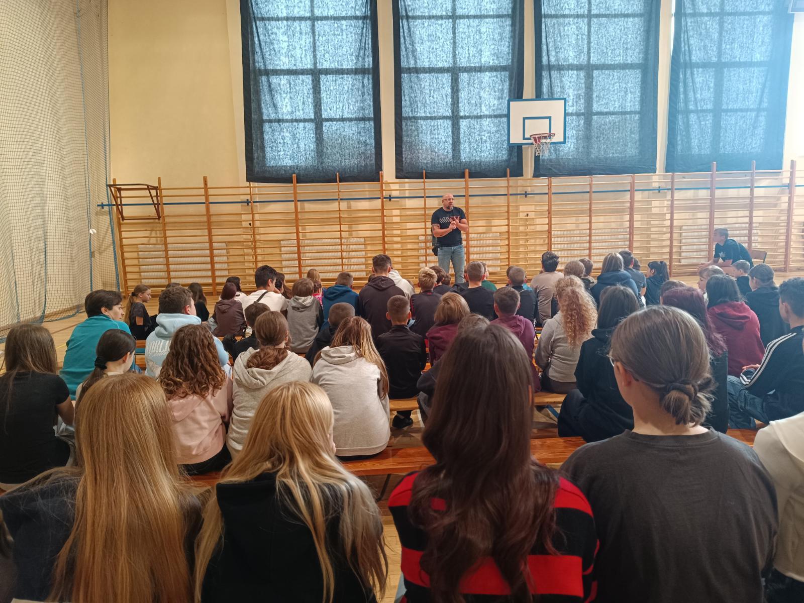 Dnia 7 października w naszej szkole odbyły się prelekcje pt. „Bezpieczeństwo w sieci”, zorganizowane przez Komendę Wojewódzką Policji w Rzeszowie. Podczas spotkania uczniowie dowiedzieli się, jak bezpiecznie korzystać z Internetu, chronić swoje dane osobowe oraz unikać zagrożeń związanych z cyberprzestępczością. Policjant zwrócił uwagę na odpowiedzialne zachowania w sieci i konsekwencje niewłaściwego korzystania z mediów społecznościowych. Spotkanie było bardzo interesujące i pouczające, a zdobyta wiedza z pewnością pomoże uczniom w codziennym, bezpiecznym korzystaniu z Internetu.