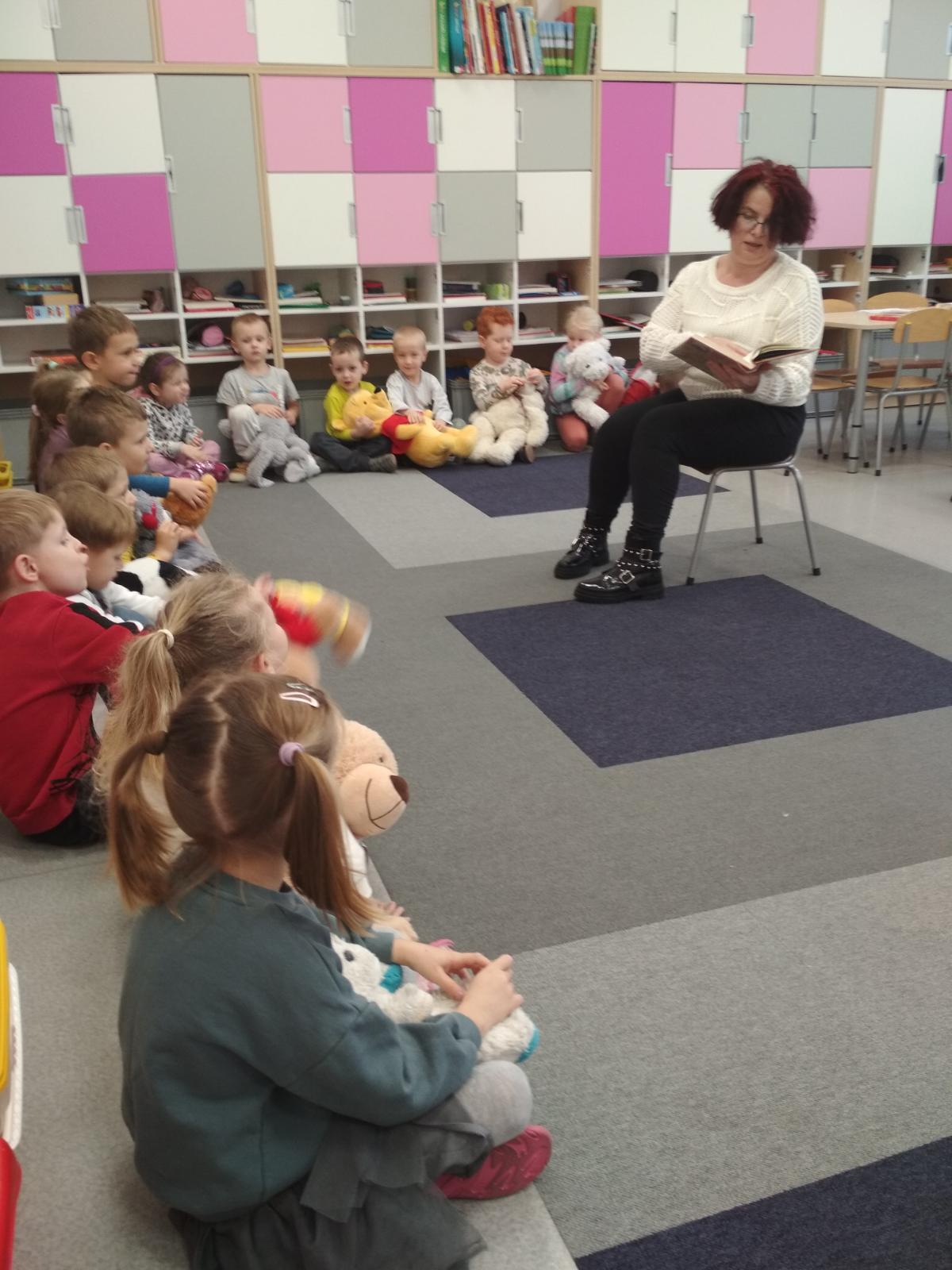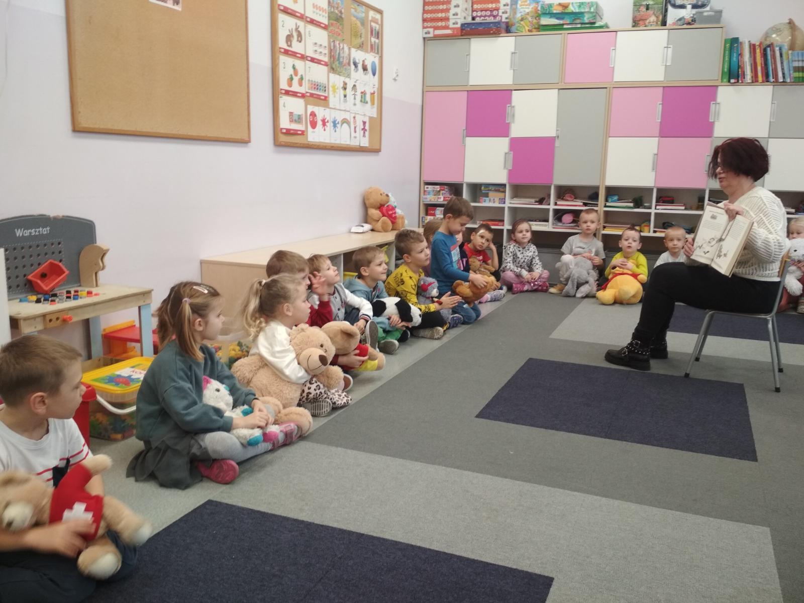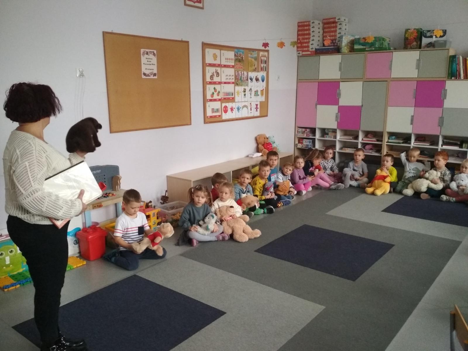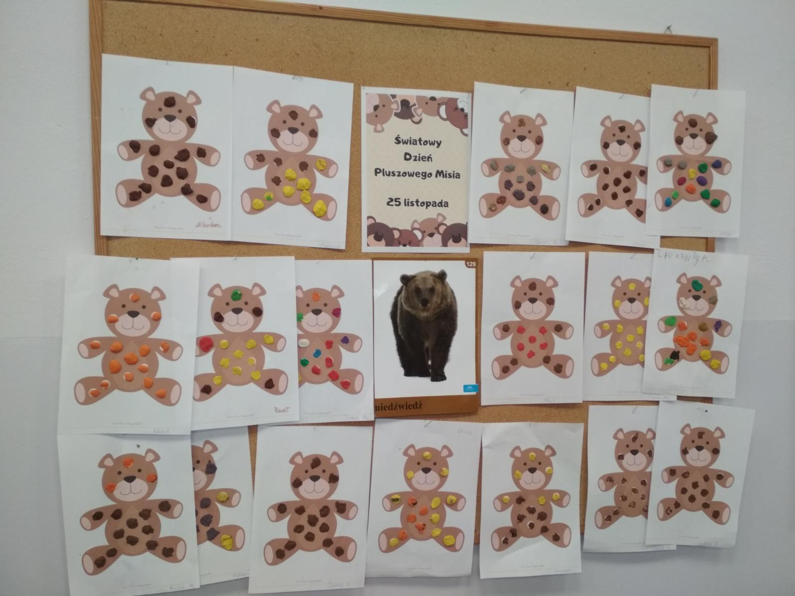 25 listopada, w dniu Pluszowego Misia, wszystkie dzieci przyniosły do przedszkola zabawki przytulanki. Poznały historię ocalenia niedźwiadka przez prezydenta Theodora Roosvelta na podstawie filmu edukacyjnego. Na pamiątkę tych odległych w czasie wydarzeń, co roku prowadzone są zajęcia z dziećmi i wykonywane są prace plastyczno - techniczne. Dzisiaj odwiedziła nas pani Bibliotekarka Alicja Pawełek i zaprezentowała bardzo ciekawe prace plastyczne dla dzieci. Dziękujemy za przybycie i ciekawe zajęcia.