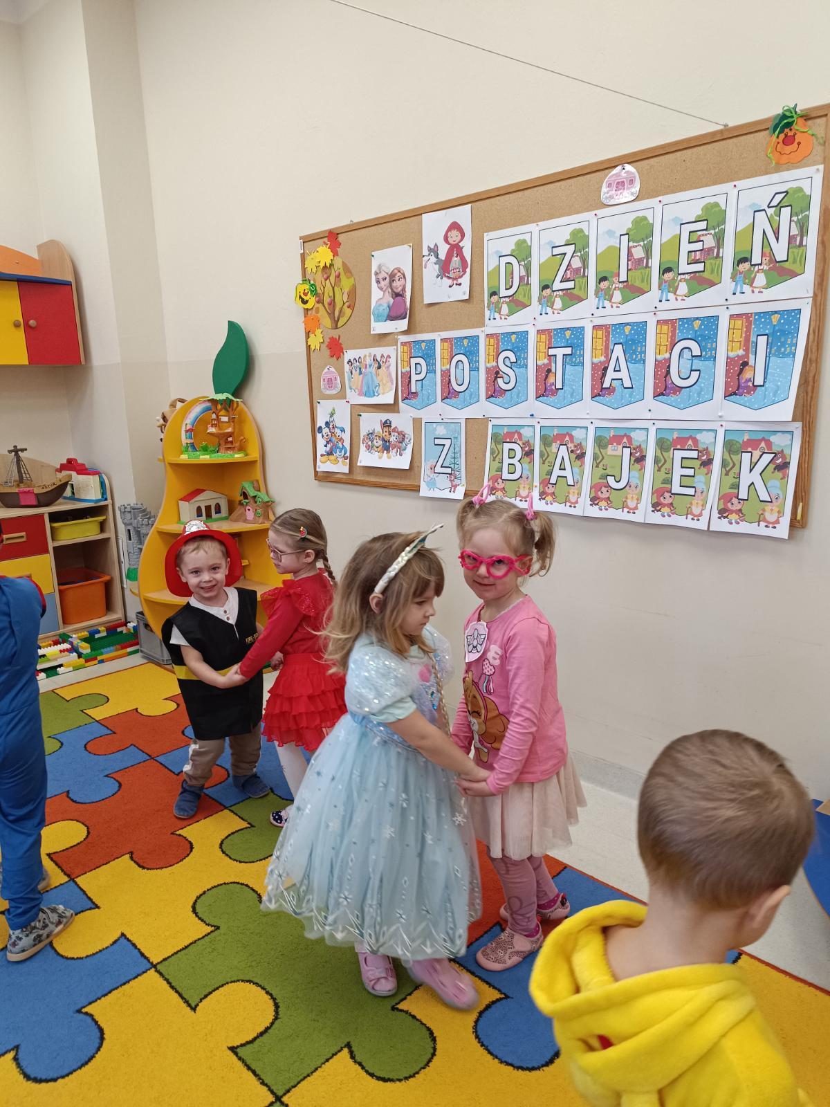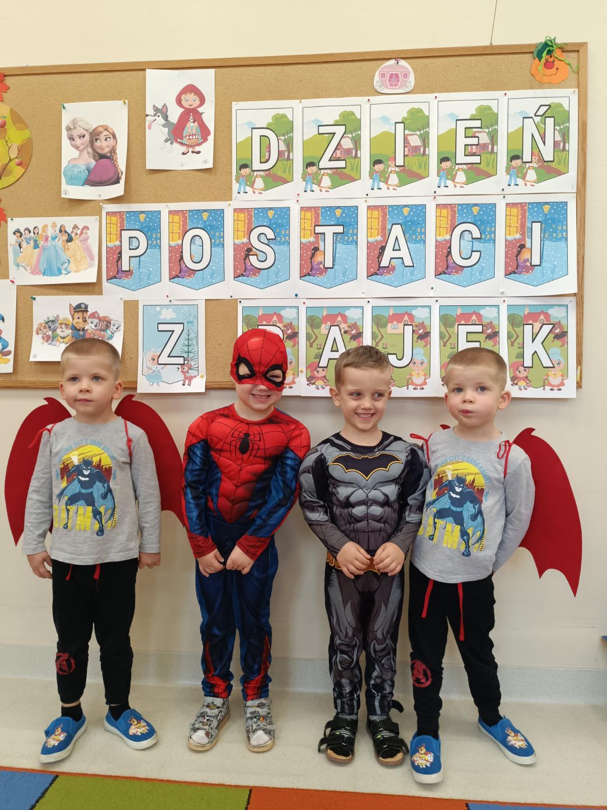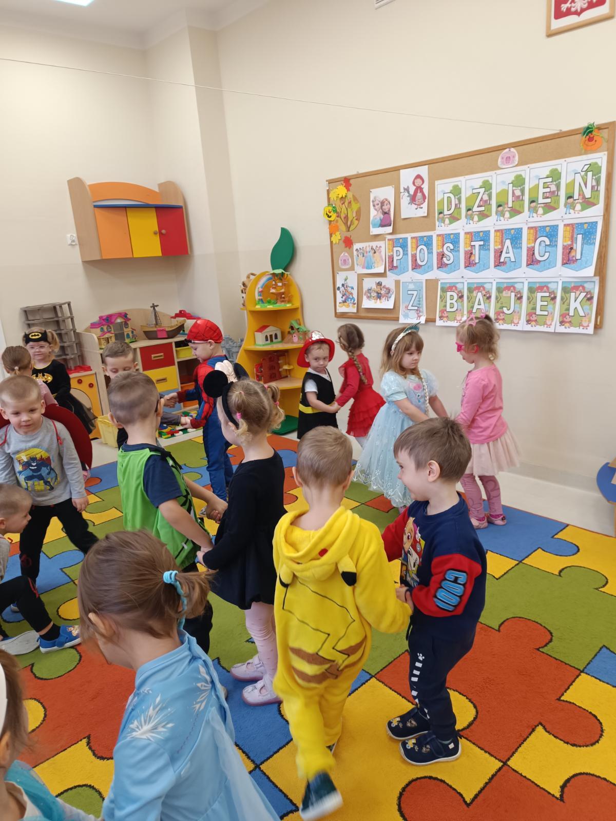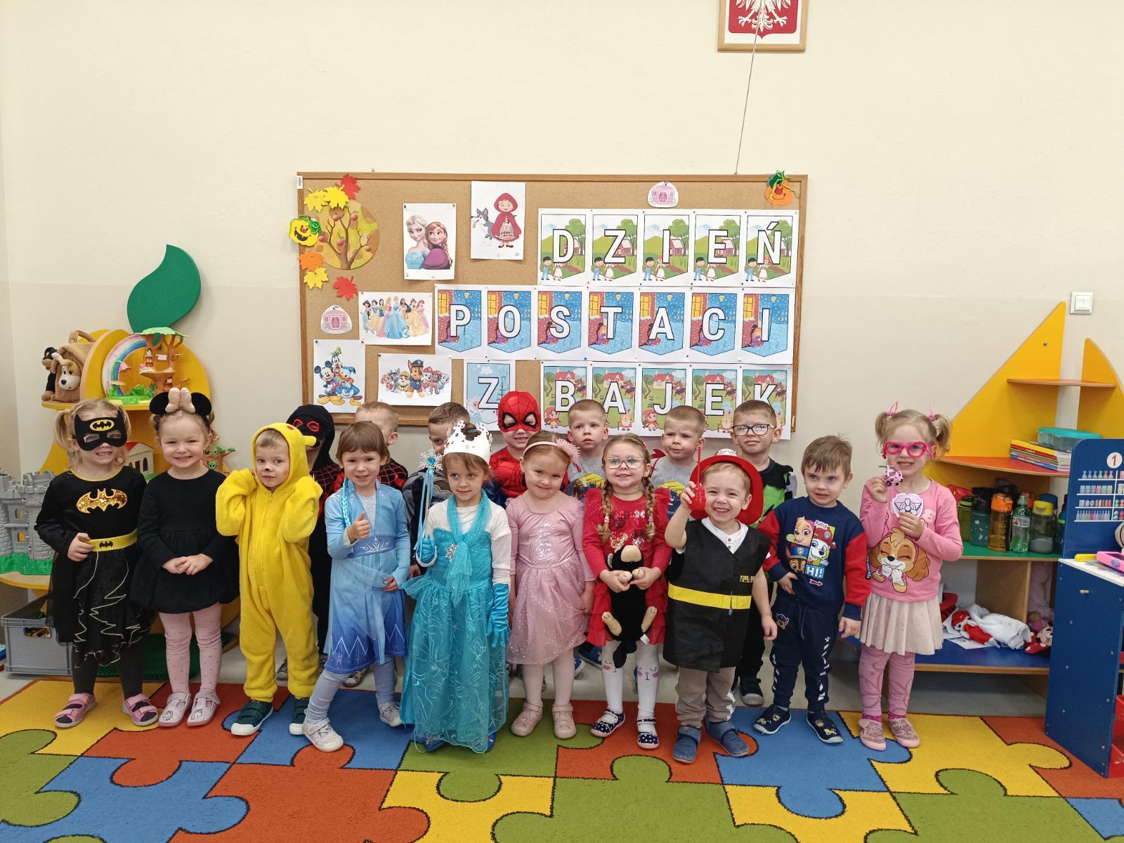 12 listopada 2025 r. w grupie P1 obchodziliśmy Dzień Postaci z Bajek. Tego dnia nasze przedszkolaki zamieniły się w bohaterów swoich ulubionych bajek. W sali można było spotkać m.in. Roszpunkę, Spider-Mana, Czerwonego Kapturka, Elsę, Strażaka Sama i wielu innych bohaterów. Dzień rozpoczęliśmy pokazem mody na czerwonym dywanie, a następnie bawiliśmy się świetnie przy muzyce, uczestniczyliśmy w zabawach ruchowych oraz rozwiązywaliśmy bajkowe zagadki. Nie zabrakło także czytania najpopularniejszych bajek dla dzieci.Przedszkolaki z dumą i uśmiechem prezentowały swoje barwne stroje! Oprac. Magdalena Kloch