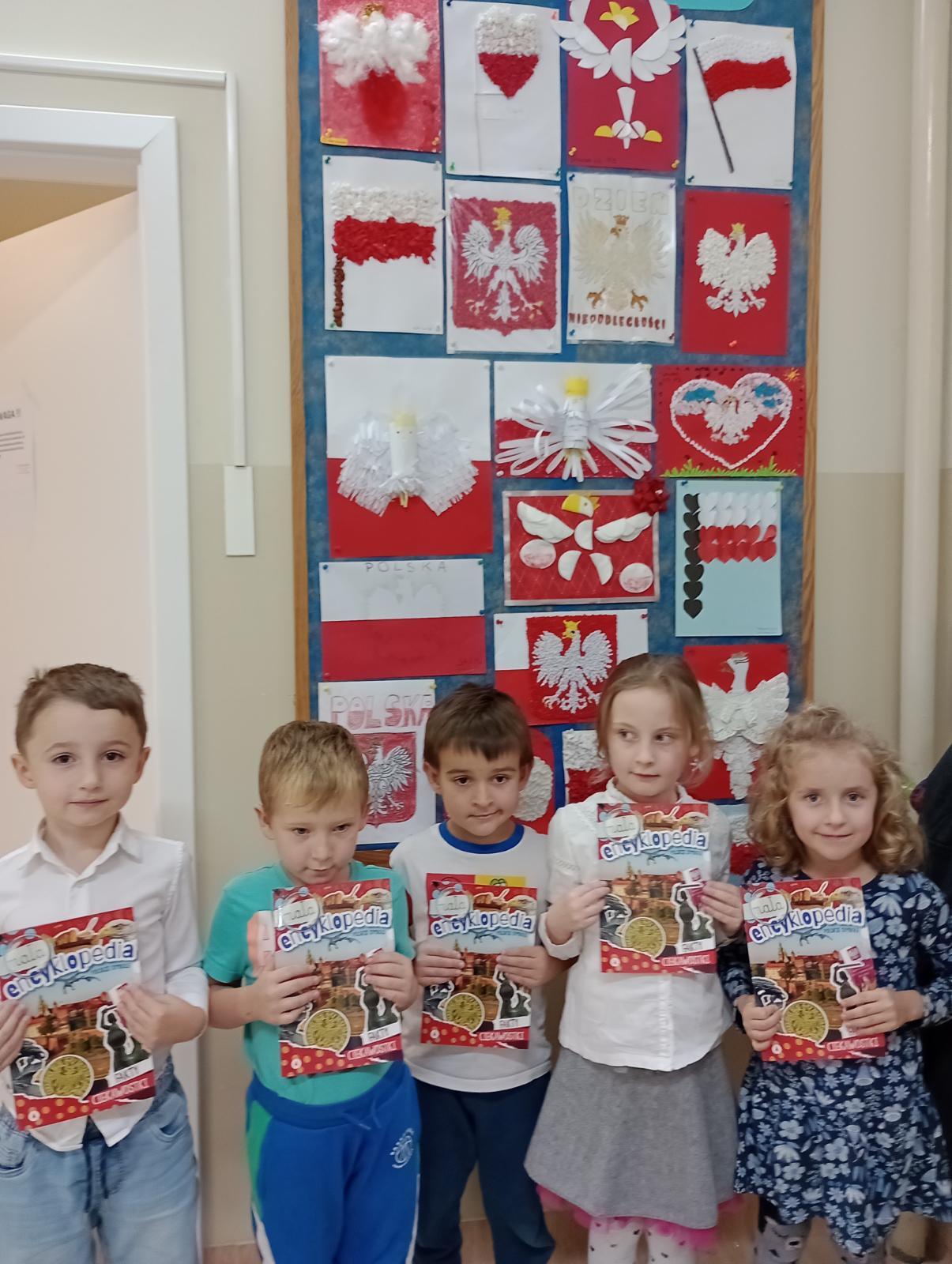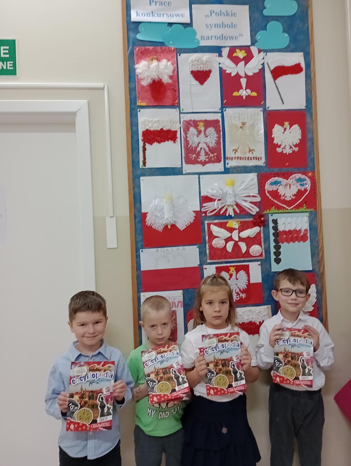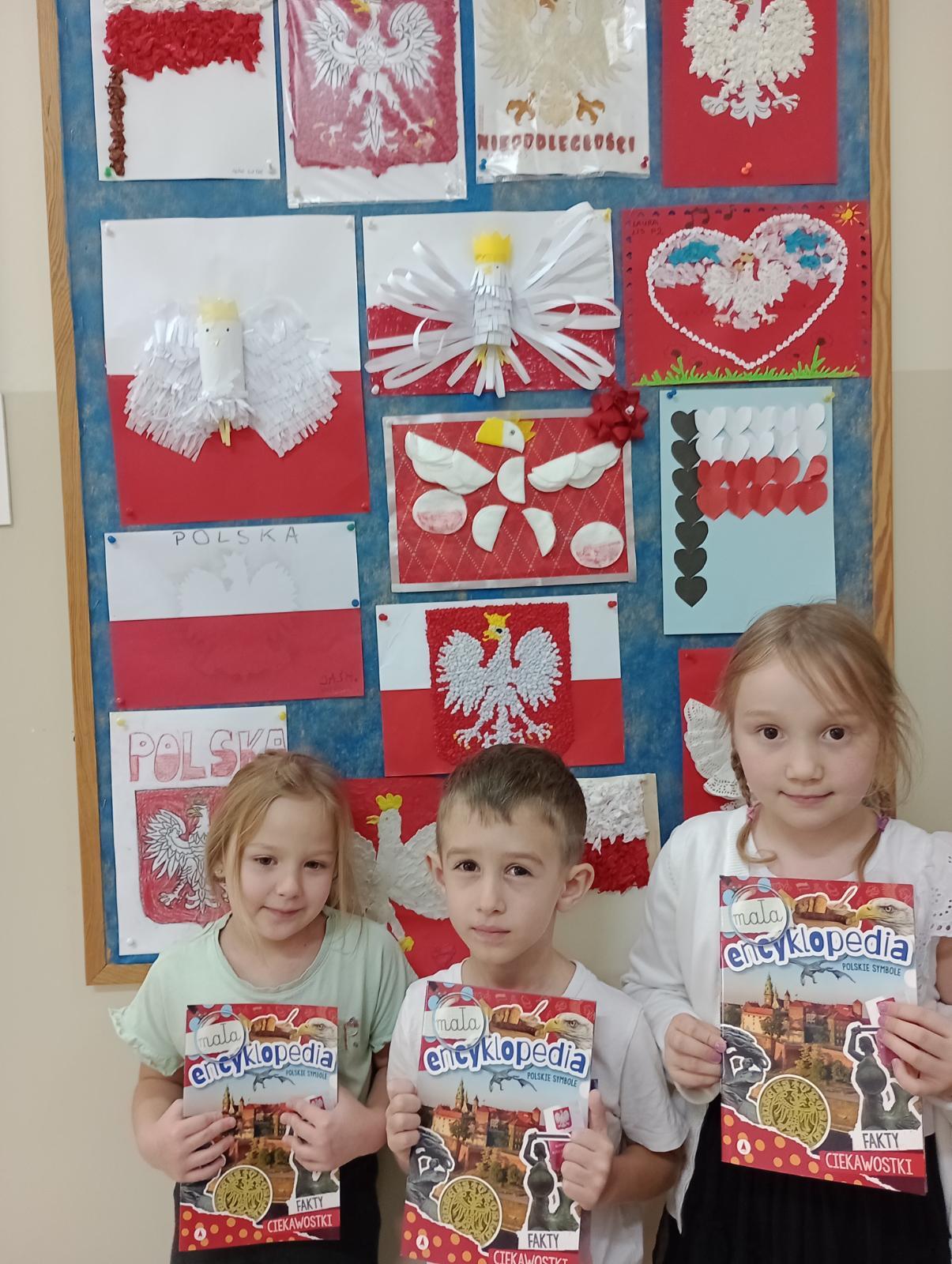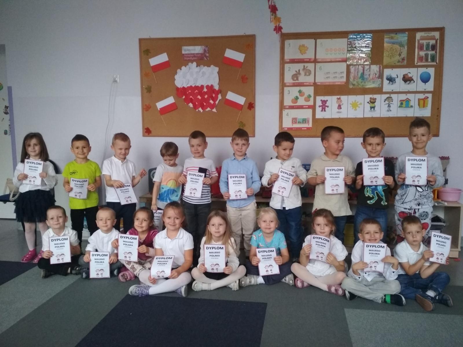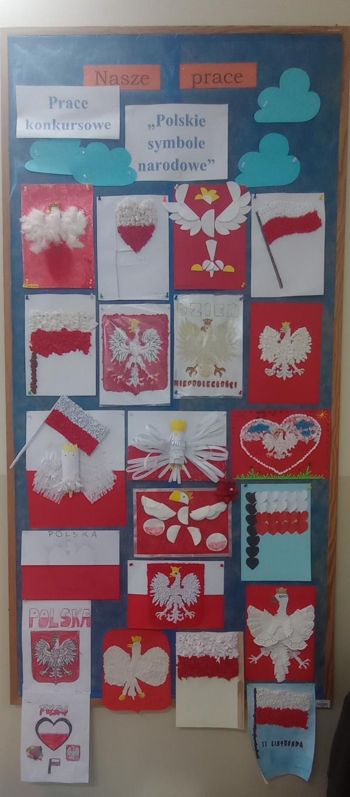 Dni przed Narodowym świętem Niepodległości wśród naszych przedszkolaków wypełnione były treściami patriotycznymi. Dzieci uczyły się wierszy oraz piosenek, a także słów hymnu narodowego, aby uczcić ten dzień uroczyście. Dzieci również przygotowywały chorągiewki z flagą polski oraz liczne prace plastyczne związane z symbolami narodowymi. Zakończeniem dni związanych z tematyką narodową oprócz uroczystego śpiewania hymnu było również rozstrzygnięcie konkursu plastycznego - „Polskie symbole narodowe”. Dzieci wraz z pomocą rodziców przygotowały piękne prace za co każdy z uczestników otrzymał dyplom oraz nagrodę rzeczową. Gratulujemy wszystkim uczestnikom zaangażowania oraz wspaniałych prac