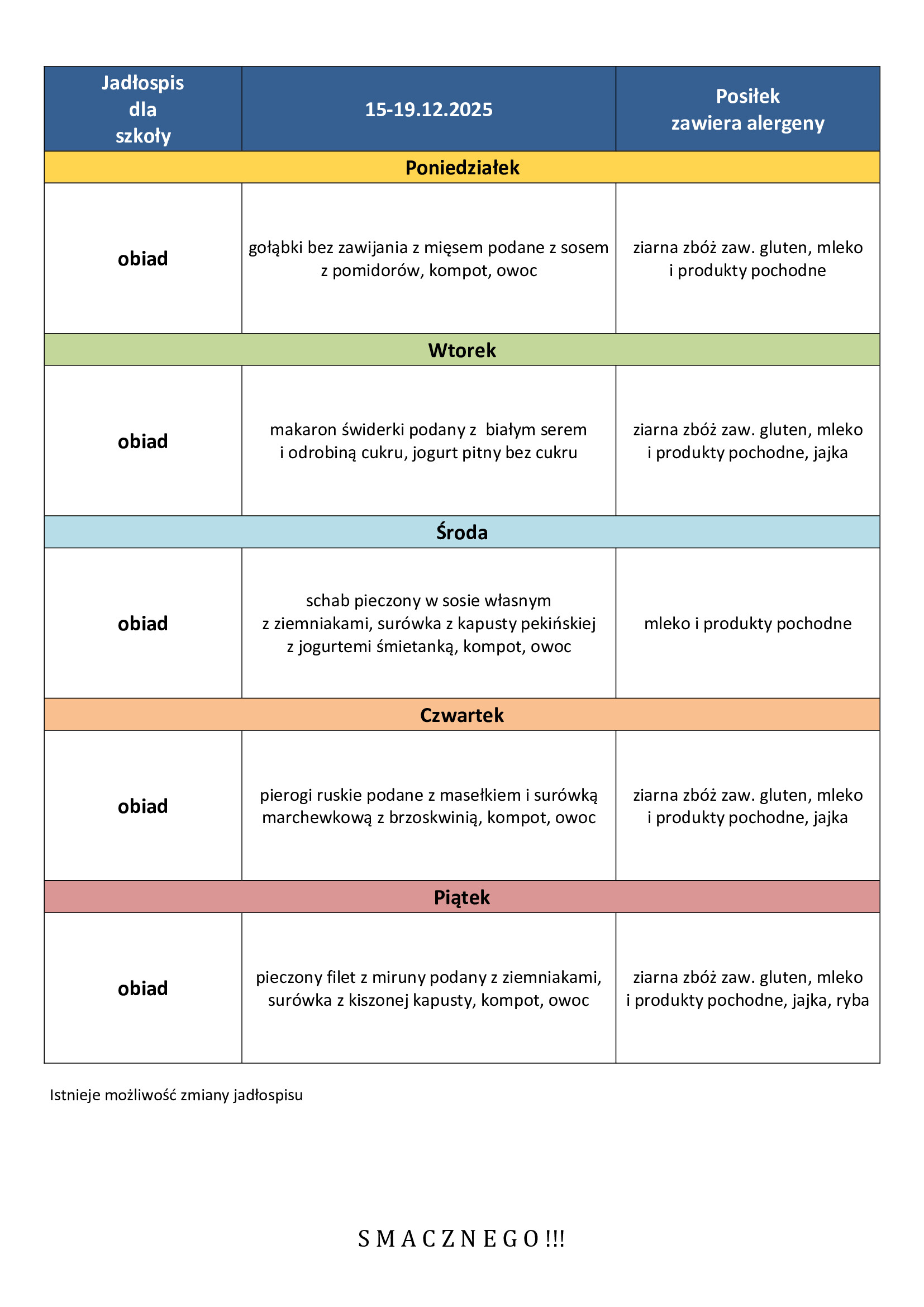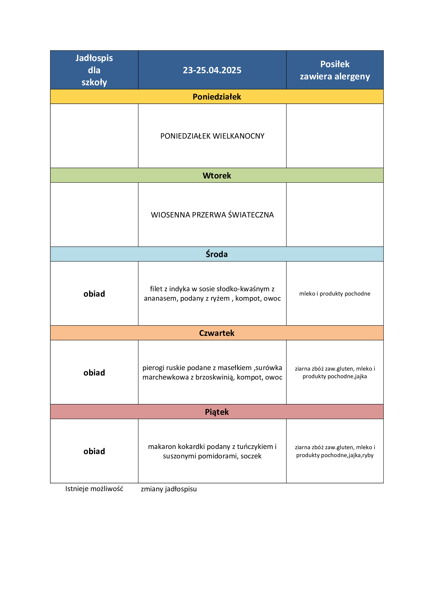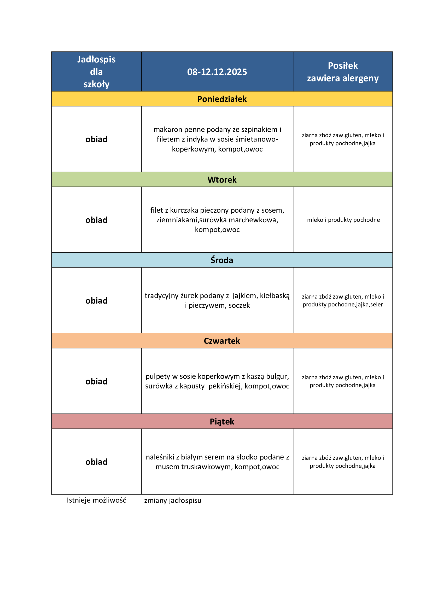 Opłata za obiady szkolne za grudzień: 60zł. Przed dokonaniem płatności proszę o kontakt tel. 17/7483619 lub osobiście w pokoju 207.