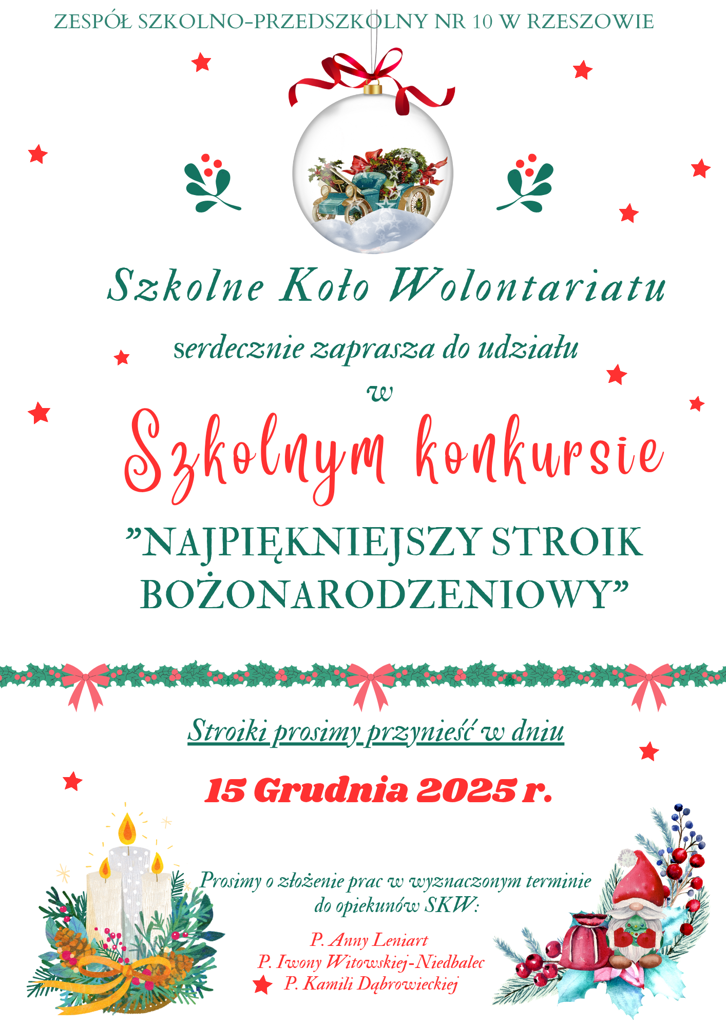 Serdecznie zapraszamy do udziału w Szkolnym Konkursie "Najpiękniejszy stroik bożonarodzeniowy". Prace konkursowe zostaną wykorzystane w celach charytatywnych.