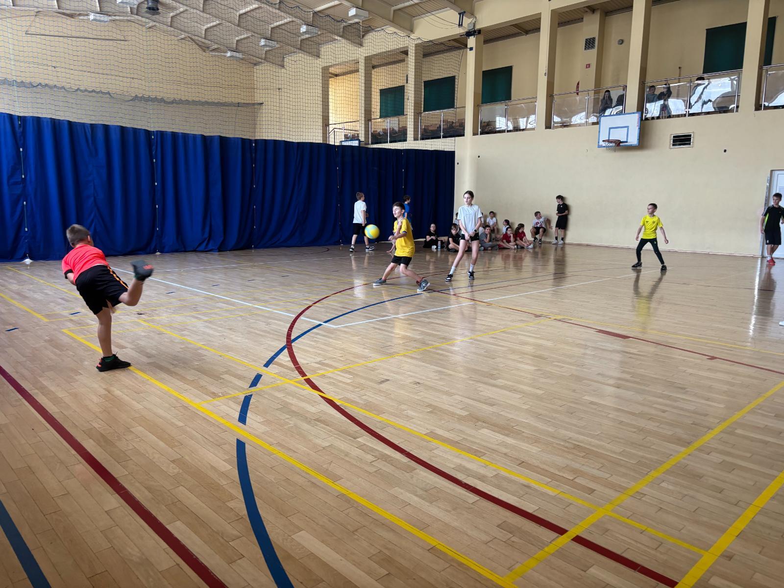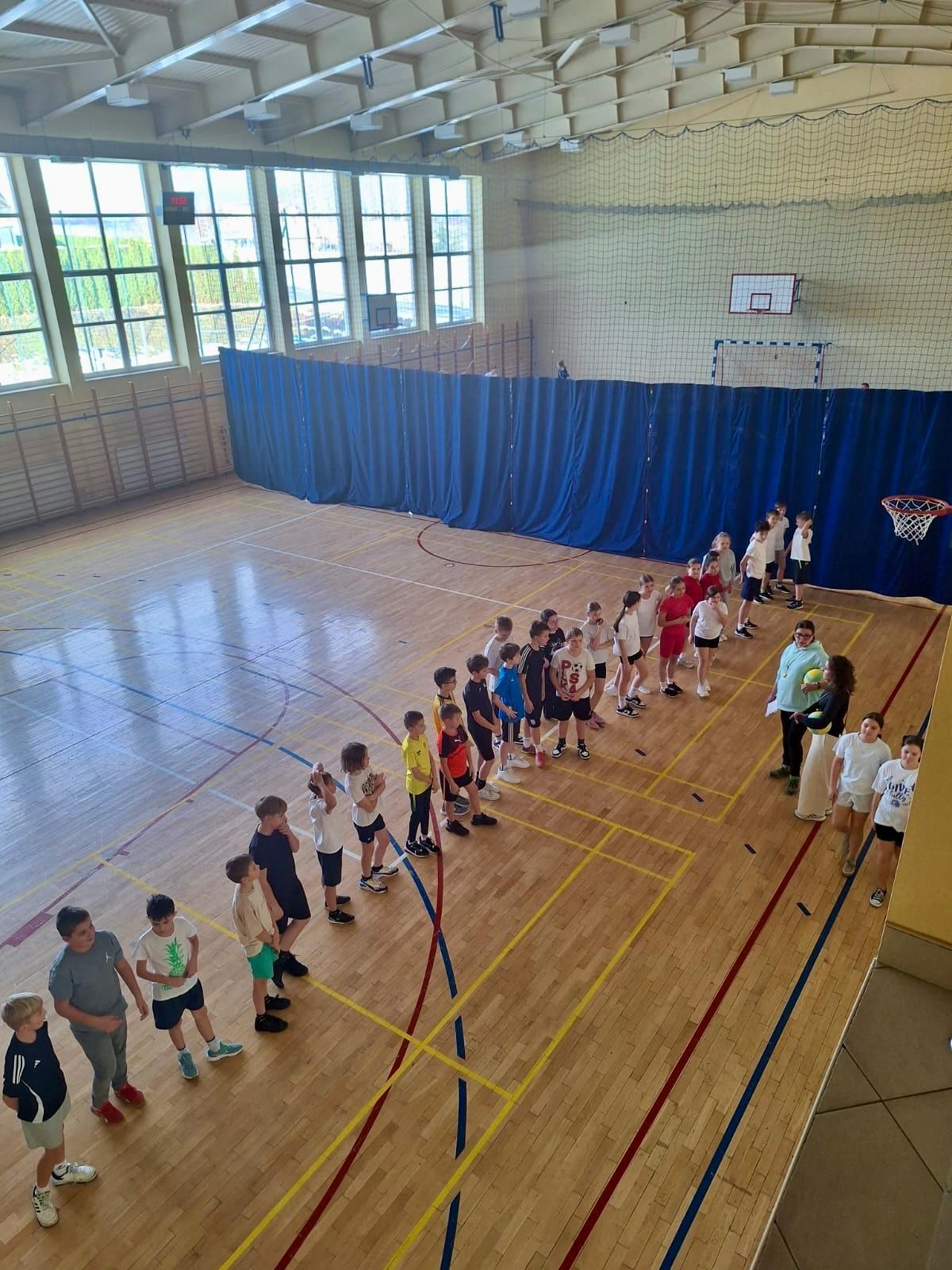 W ostatnich tygodniach w naszej szkole odbył się emocjonujący Szkolny Turniej Dwa Ognie dla klas IV–V. Rywalizacja przebiegała na przestrzeni trzech spotkań, podczas których każda z uczestniczących klas rozegrała po trzy mecze. Atmosfera była pełna sportowych emocji, zdrowej rywalizacji i świetnej zabawy. Uczniowie dali z siebie wszystko, wykazując się zwinnością, szybkością i doskonałą współpracą drużynową.