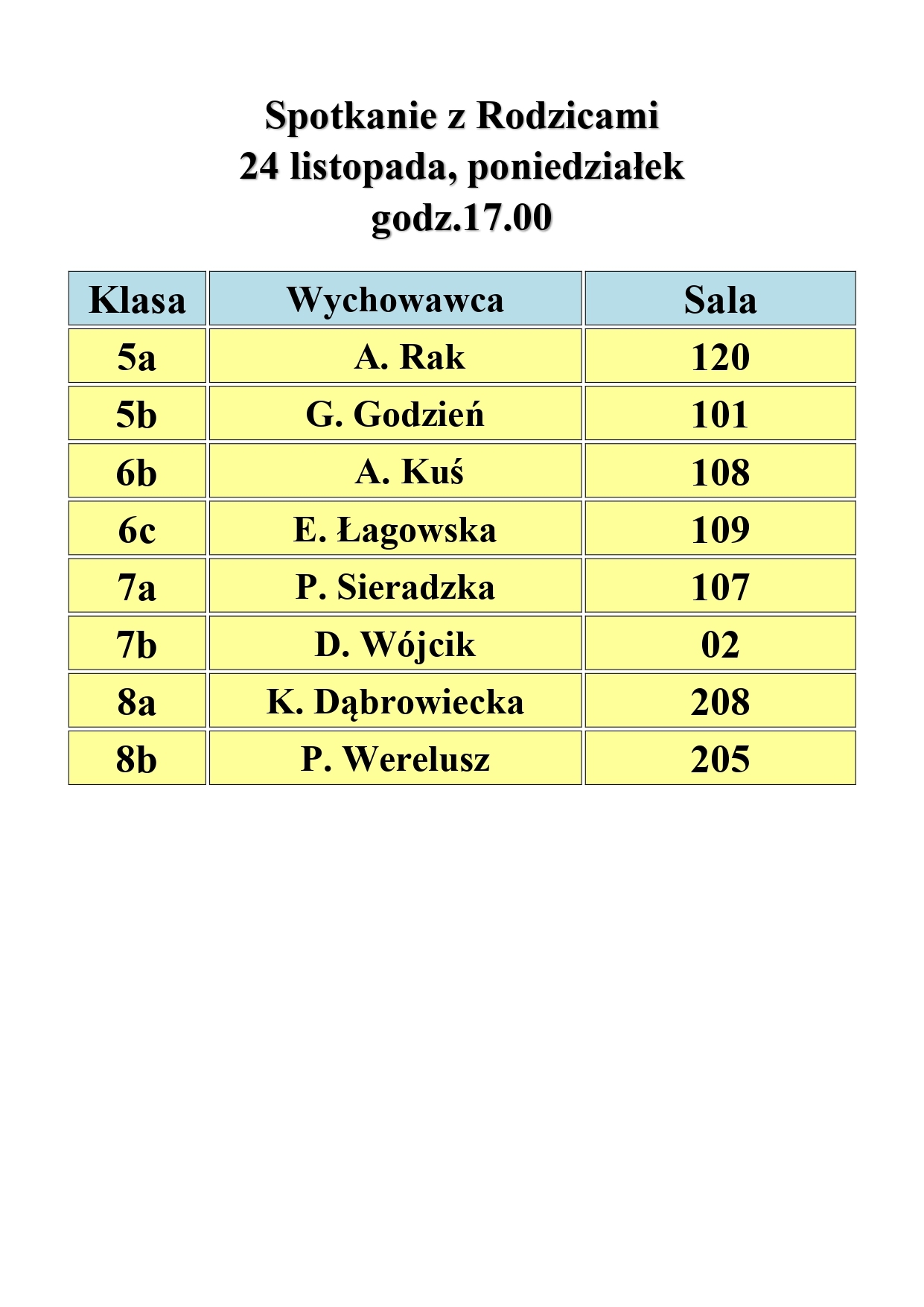 Wywiadówki odbędą się w poniedziałek 1 grudnia (16.15 klasy ósme i 17.00 spotkania w klasach)