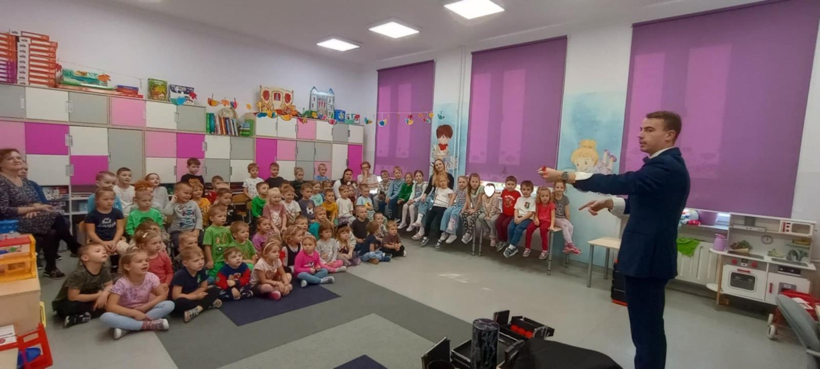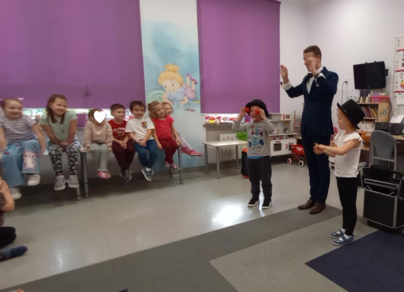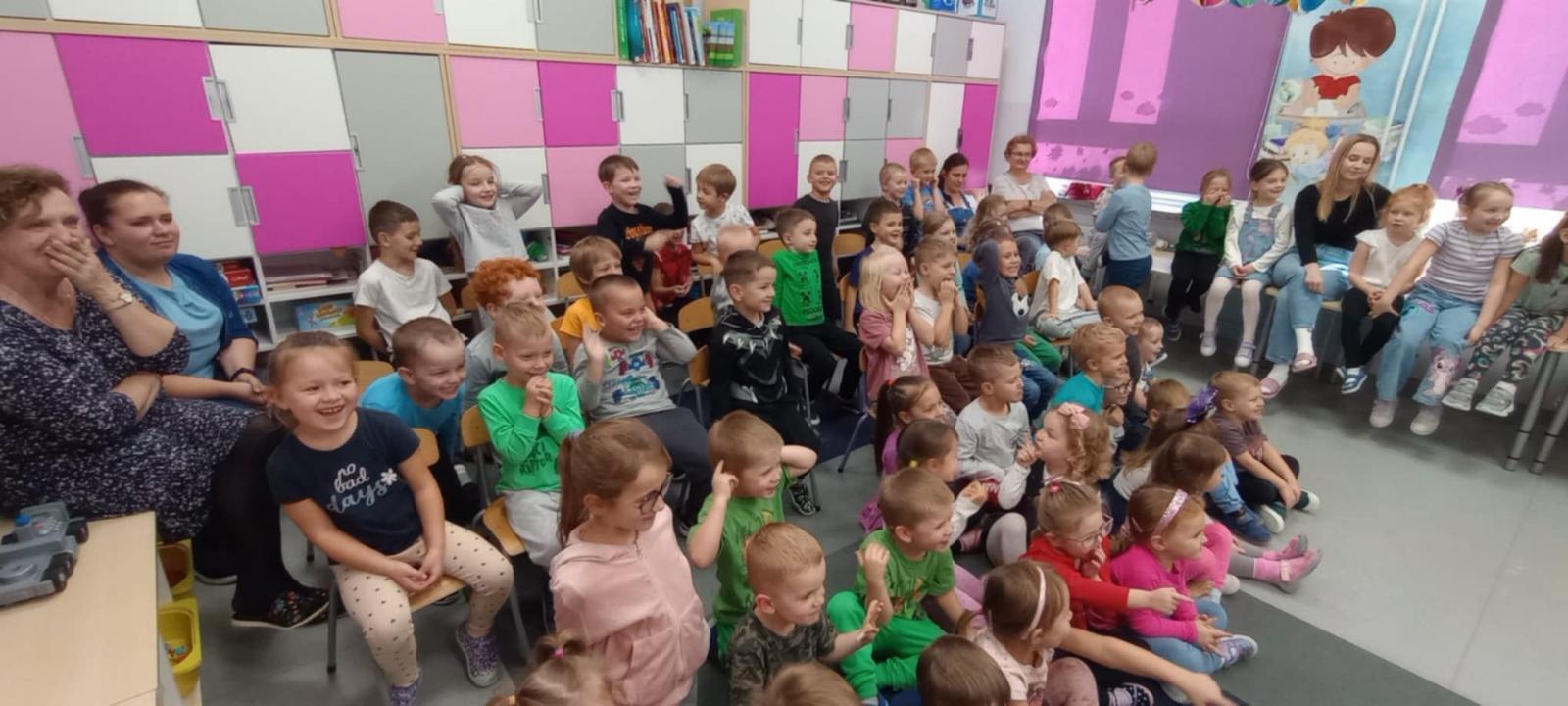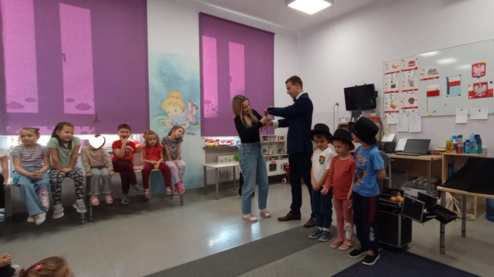 W dniu 04 listopada wszystkie przedszkolaki wzięły udział w pokazie Iluzjonisty z grupy Moccino. Dzieci były zachwycone sztuczkami przedstawionymi przez magika. Dzięki zaangażowaniu części przedszkolaków w występ pokaz stał się jeszcze ciekawszy. Wywołał u wszystkich dzieci wiele uśmiechu oraz momentów zachwytu.
