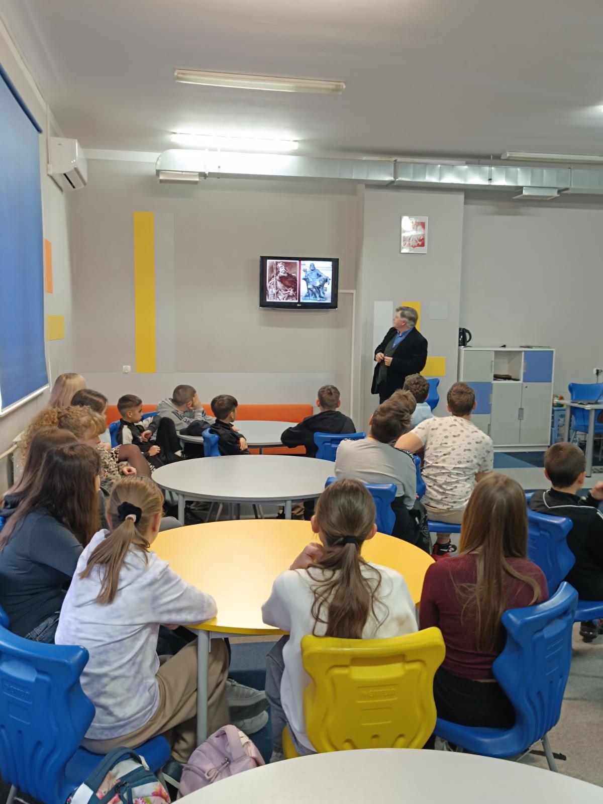 Dnia 26.11.25 r. w naszej szkole odbyło się wyjątkowe spotkanie z pracownikami muzeum, którzy przeprowadzili interesujące zajęcia na temat panowania Bolesława Chrobrego. Wydarzenie miało charakter edukacyjny i zostało zorganizowane z myślą o uczniach klas 6, aby przybliżyć im początki państwa polskiego i postać pierwszego króla Polski.